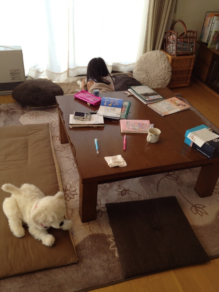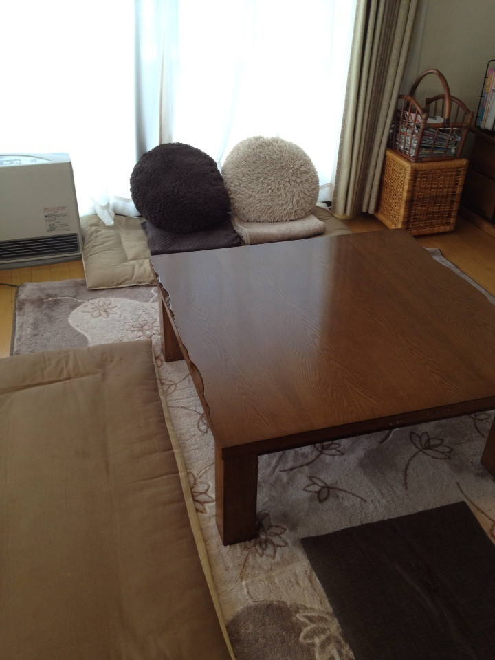リビングが狭いので、ソファも置いてないし、ローテーブルで床に座る方式なんですよ。