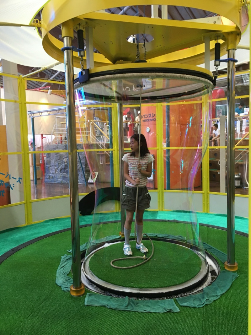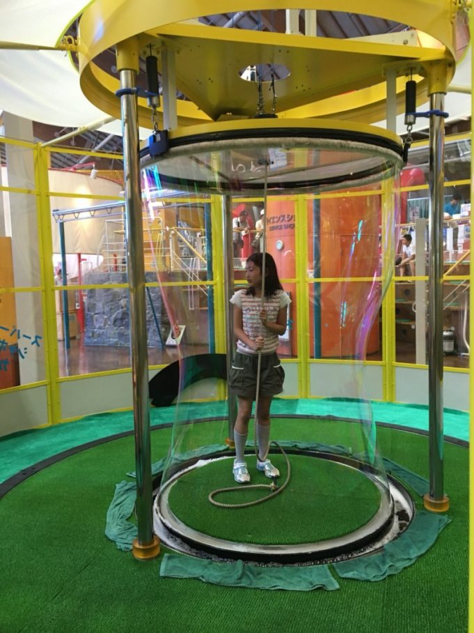 写真は、夏休みに行った山梨県立科学館で、巨大シャボン玉に入っている娘です(^.^)