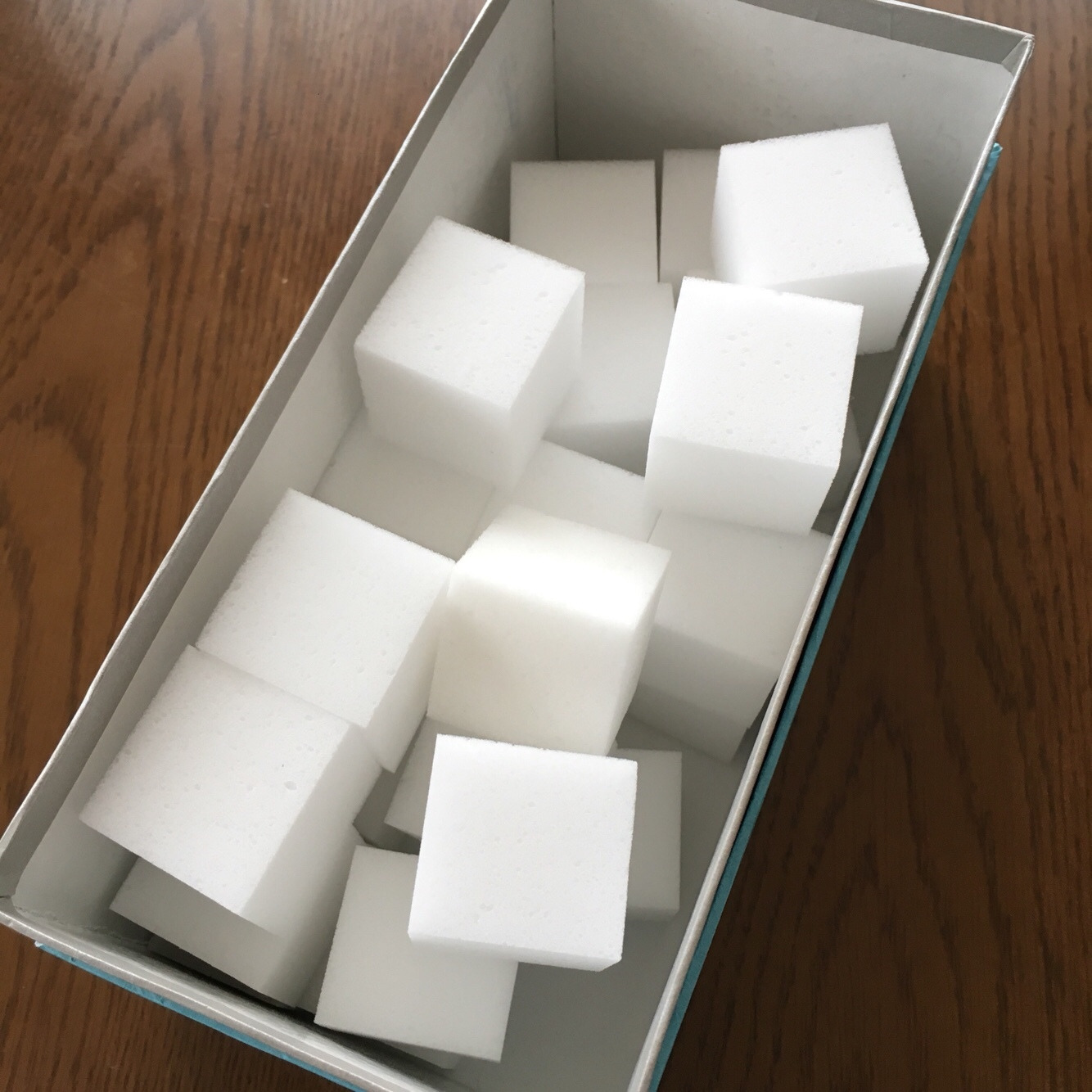 我が家ではメラミンスポンジを箱に入れて、キッチンの吊り戸棚で保管しています。