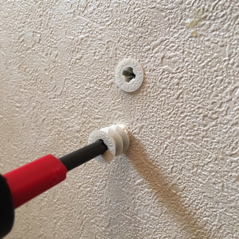 こうやって、ネジを取り付けたい場所にあらかじめ差し込むと、しっかりした足場みたいになる。