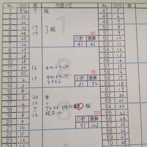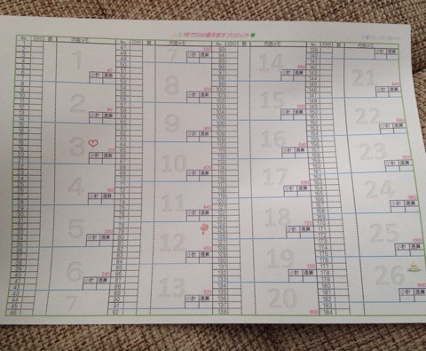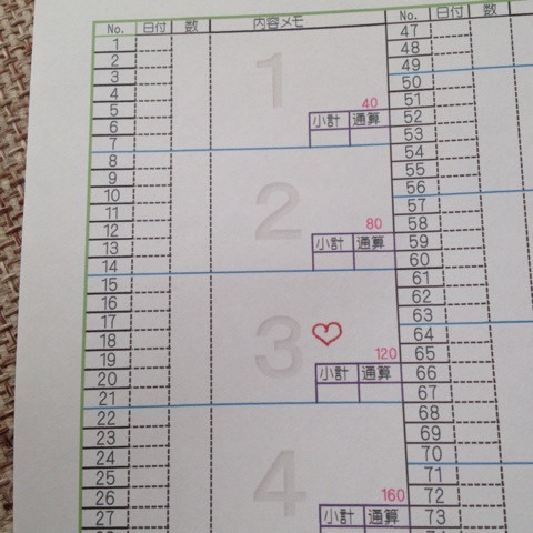 毎週40個を目安に、その週ごとの通算の目標数が書いてありますので、それを見ながら進み具合を管理できます。