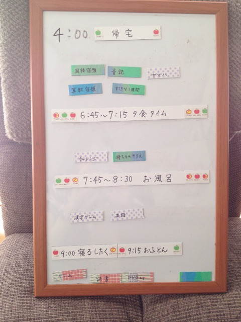 それと、私も手伝いますが、自分でスケジューリングをすれば守る気になるかなーと期待しています。