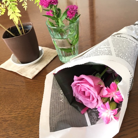 ところで写真の左側の花はアスターで、鉢植えから摘んだものです。