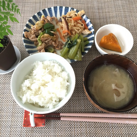 写真は今日の「主婦のお昼ごはん」。残り物ですがお腹空いてるせいか、いつも美味しく食べてます!