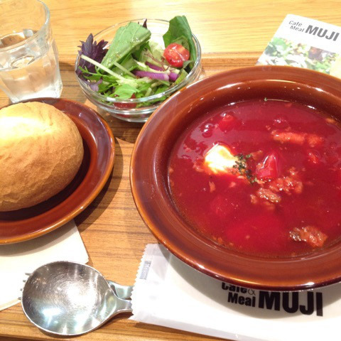 MUJIカフェのボルシチセット。昨日行ってきました。