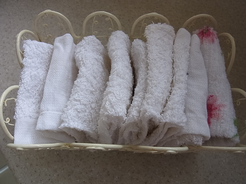 一応原則としては、タオルを8等分くらいにした使い捨て布を使っています。