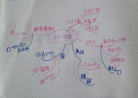 そして、理想的とはいかなかったけれど「これから寝るまでの間に終えることができれば今日はOK」と思える項目を周りに放射状に書き加えていきます。