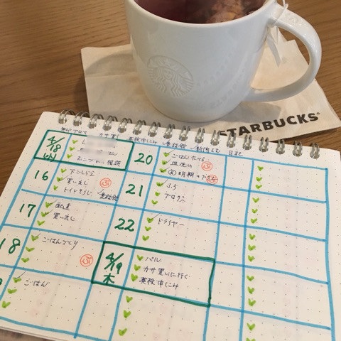 ゴミ出しや皿洗いなどの細かいルーティンであっても、ちゃんと書き込んで、終わったらチェックマークをつけることで気持ちに区切りをつけています。