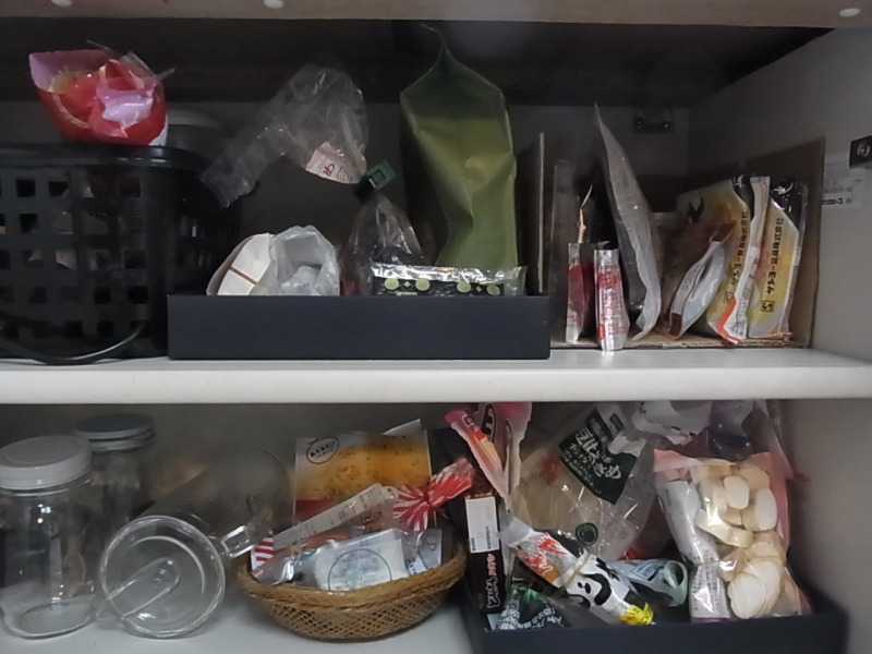 昨日のお片づけは、不要な食品の処分と、簡単な分類で終わってしまいました。食品に関してはとりあえずOK。