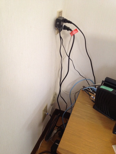 そう思ったので、テーブルタップを使い、コンセントから出ているコードは1本だけにしました。