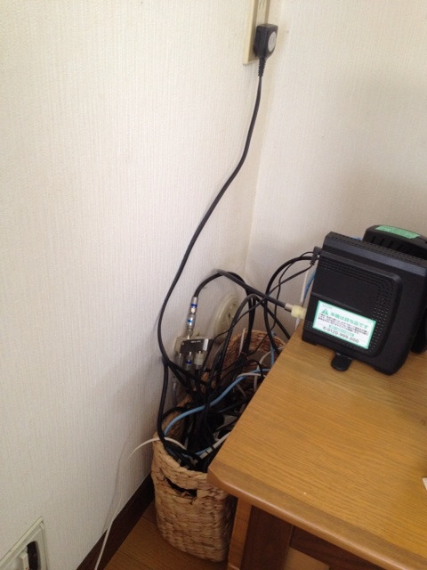 しかーし、J-COMのアダプターやら無線LANやらDVDプレーヤーやらが入り組んでいて、何本ものコードが絡まり合い、わけのわからない状態。