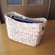 (上の写真でも使ったこのMサイズのカゴには、日記帳や家計簿を入れていますが、これのLサイズが候補の1つ)