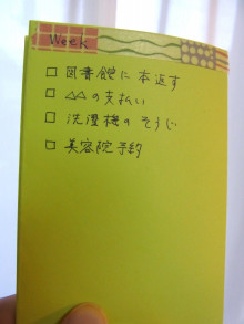 手帳に書かないような細かいことまで書いています。洗濯とか、生協の注文とか、支払いとか、市役所に電話とか、図書館行きたいとか。