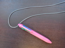 まず細ゴム紐を120センチくらいに切って、ペンを通します。