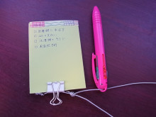 前の記事に続いて、ミニメモを肌身離さず持ち歩く方法です。縫い物の必要もなく、とても簡単にできます。