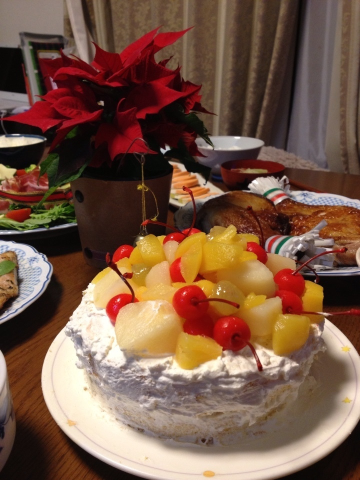 もう一枚の写真は、去年のデコレーションですが、クリームの塗り方、進歩してますね。