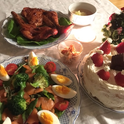 我が家はイブの日に夕方まで外出していたので、クリスマスディナーは今日になりました。