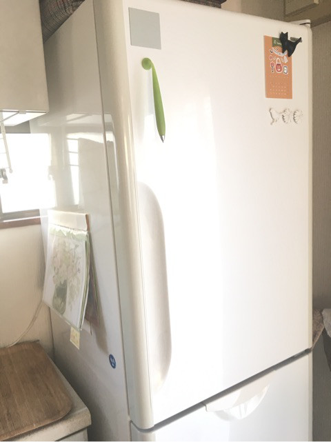 さて我が家の冷蔵庫の扉には、去年までいろんなものが貼り付けられていました。