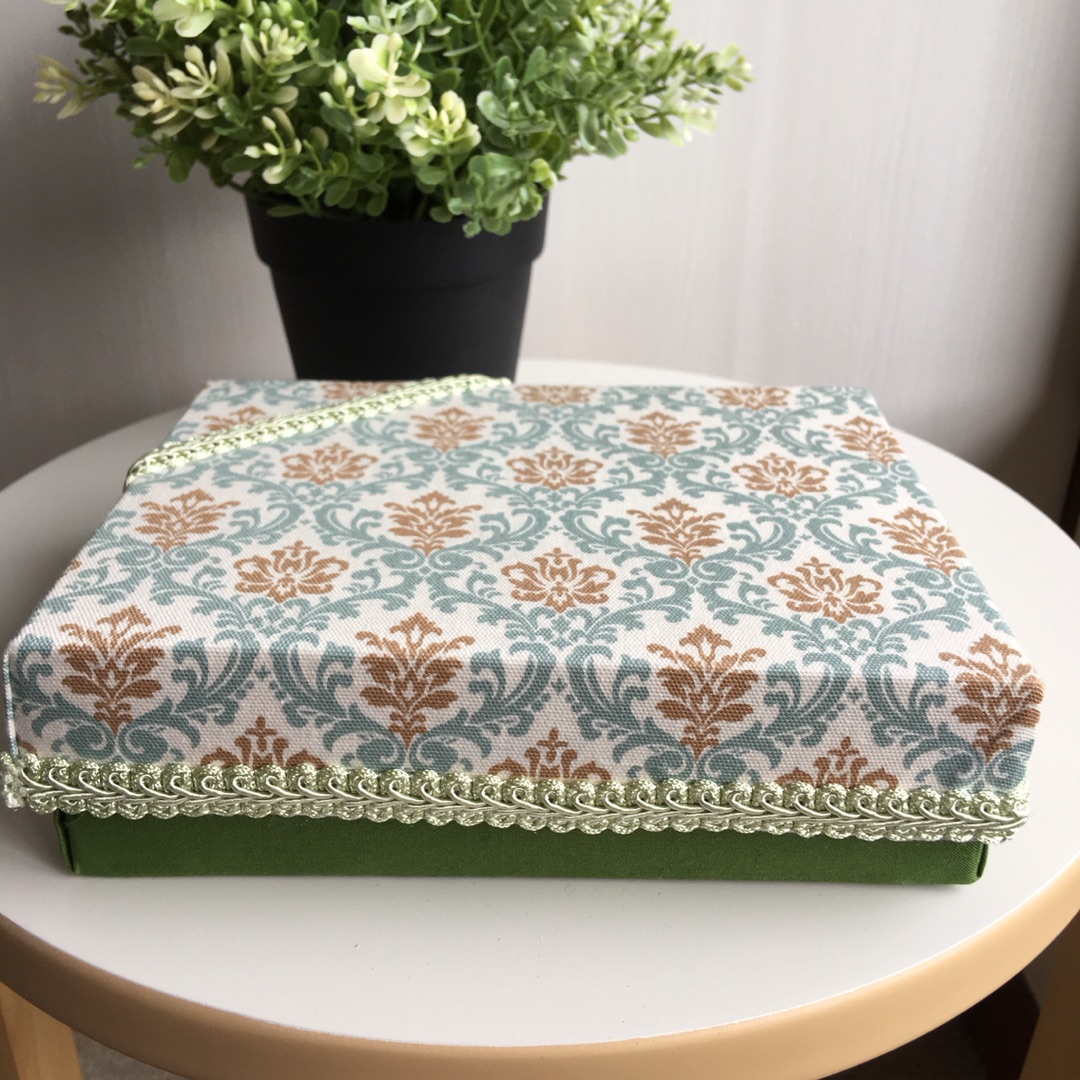 私以外の人たちは、ティッシュボックスに布を貼っていました。