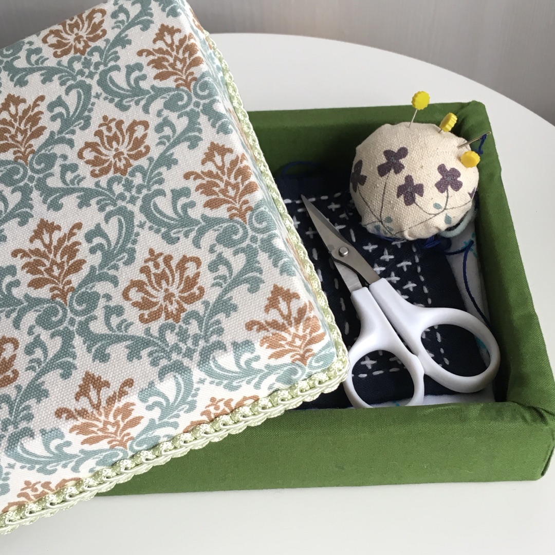 箱が可愛くなったので、刺し子グッズを持ち歩いて、出先のカフェなどでコツコツ針を刺すのがますます楽しみ。