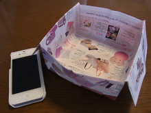 広告を使って折り紙した箱を調理台に置き、野菜の皮などが出たらどんどん放り込みます。