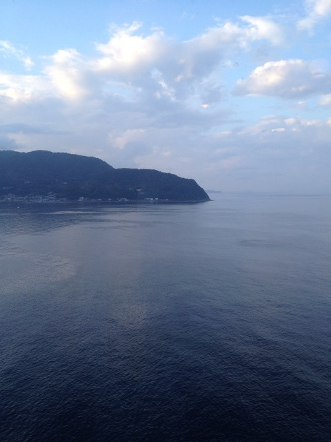 窓からの景色。夕方の海です。