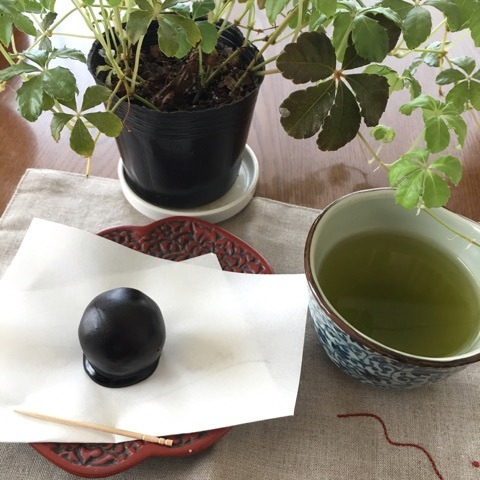 お片づけ頑張ったらちょっと一息。甲府のお菓子「くろ玉」です。すごく気に入ってしまった*(^o^)/*