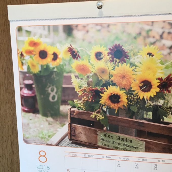トイレのカレンダーも、夏真っ盛りのひまわりです?