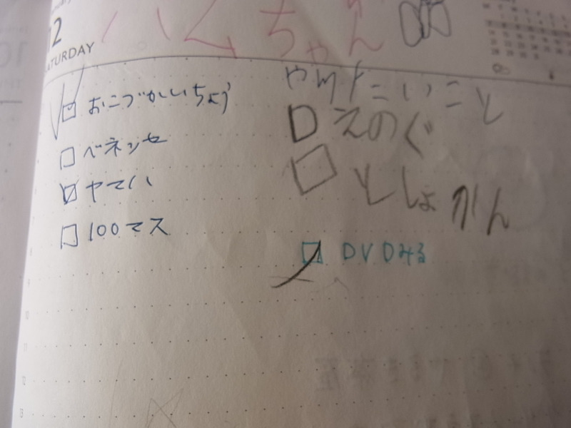 何を書いているかというと、たとえば娘が放課後に家でやることのリスト。