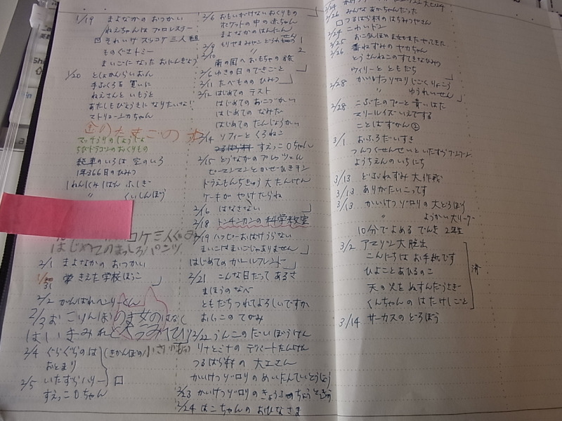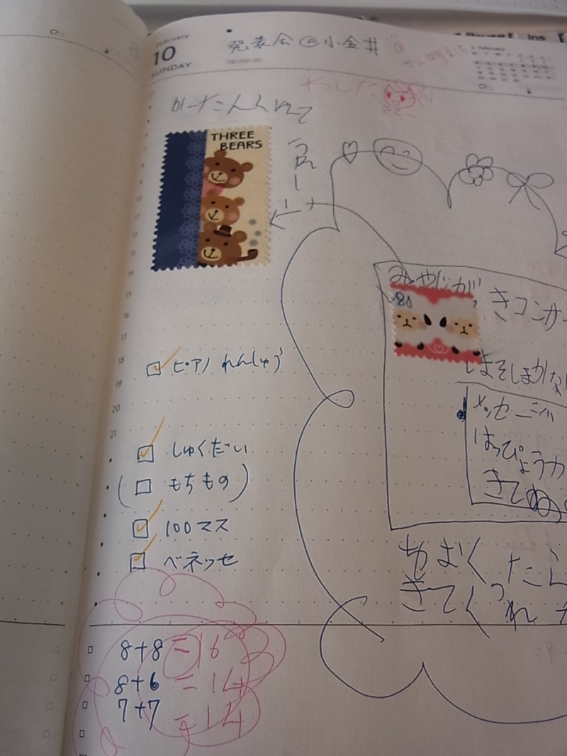 あな吉さん流の子ども手帳は、付せんなどを活用したスケジュール管理というイメージなのですが、うちのはもう少しアバウトな感じ。