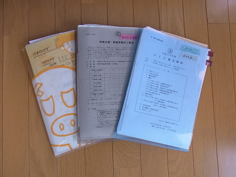 それと終わってしまった宿題プリントの保存用で、合わせてファイルは3つ。