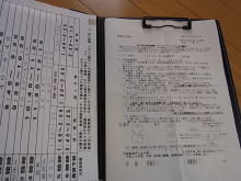 表紙付きのクリップボードにはさんで、パッと開いて見られるようにしてあります。