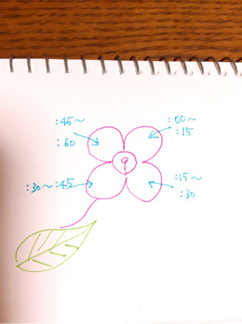 花びらマップでは、1時間を15分ずつ4コマに分け、それぞれに花びらを1枚ずつ割り当てます。
