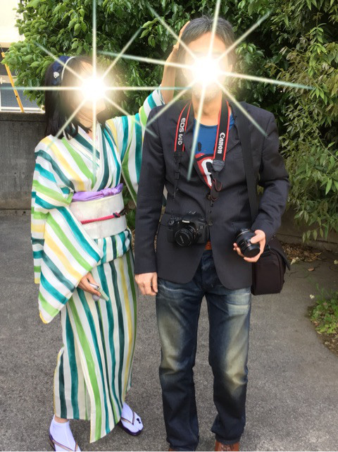 (娘と叔父に当たる私の弟のツーショット。中学入学祝いにプレゼントしてくれた着物姿で。着付け失敗して裾が短い…)