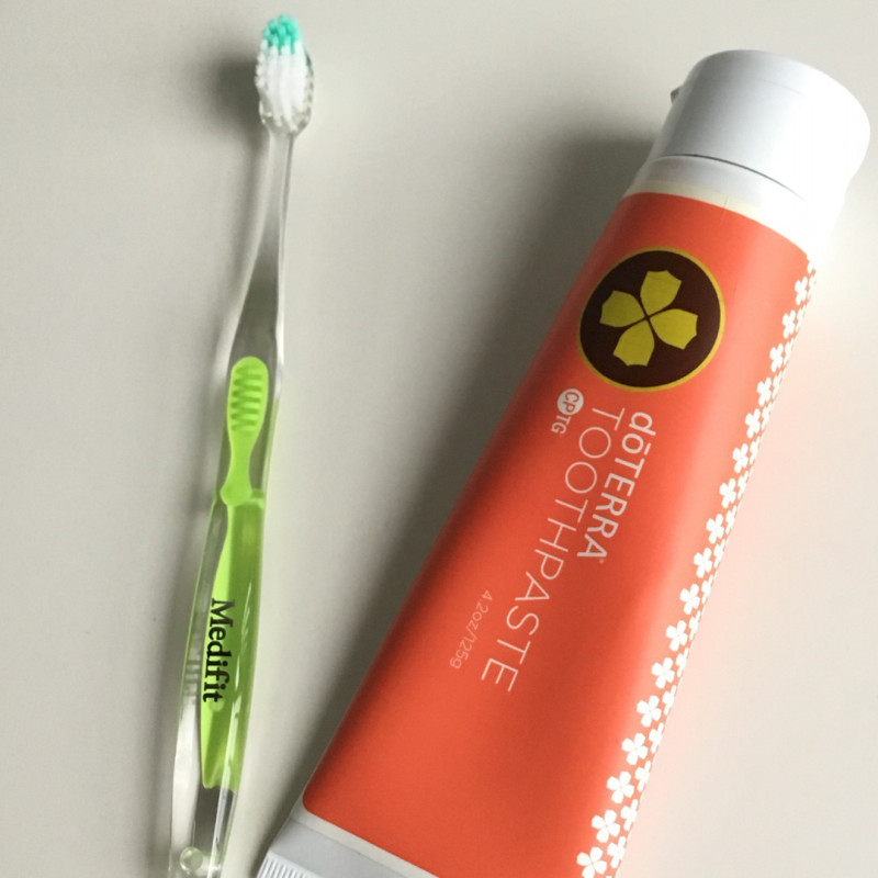 (歯磨き粉はお友だちからいただいたドテラ社のもの!)