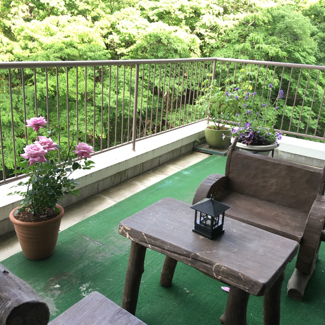 これはロビーの外のバルコニー。いい季節だなぁ。