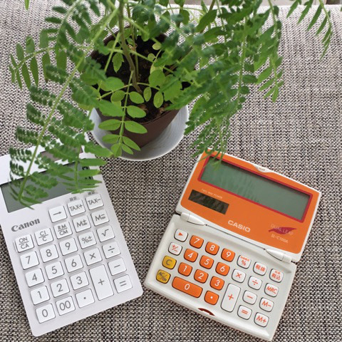 (左が新しい電卓です。広げた大きさはあんまり変わらないのね。気づかなかった)