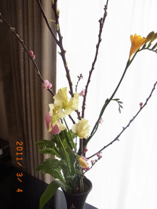 毎年桃と菜の花を買うのですが、今年は魔がさして別の組み合わせのを買ってしまいました。
