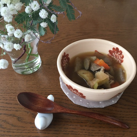 花を眺めながらゆっくり豚汁食べました。