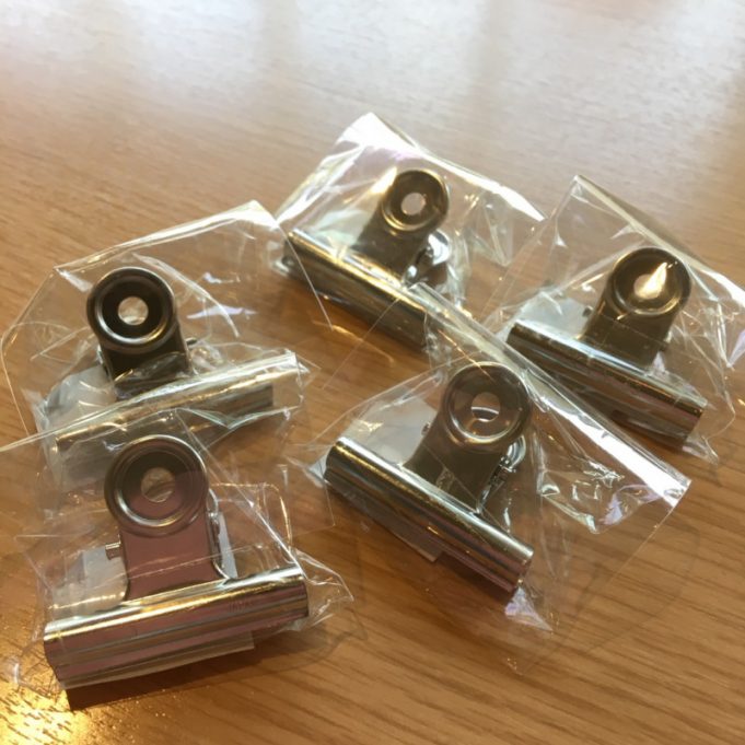 クリップって、箱にザラザラ入って売ってるものかと思ってたので、戸惑いつつ、とりあえず5個買いました。