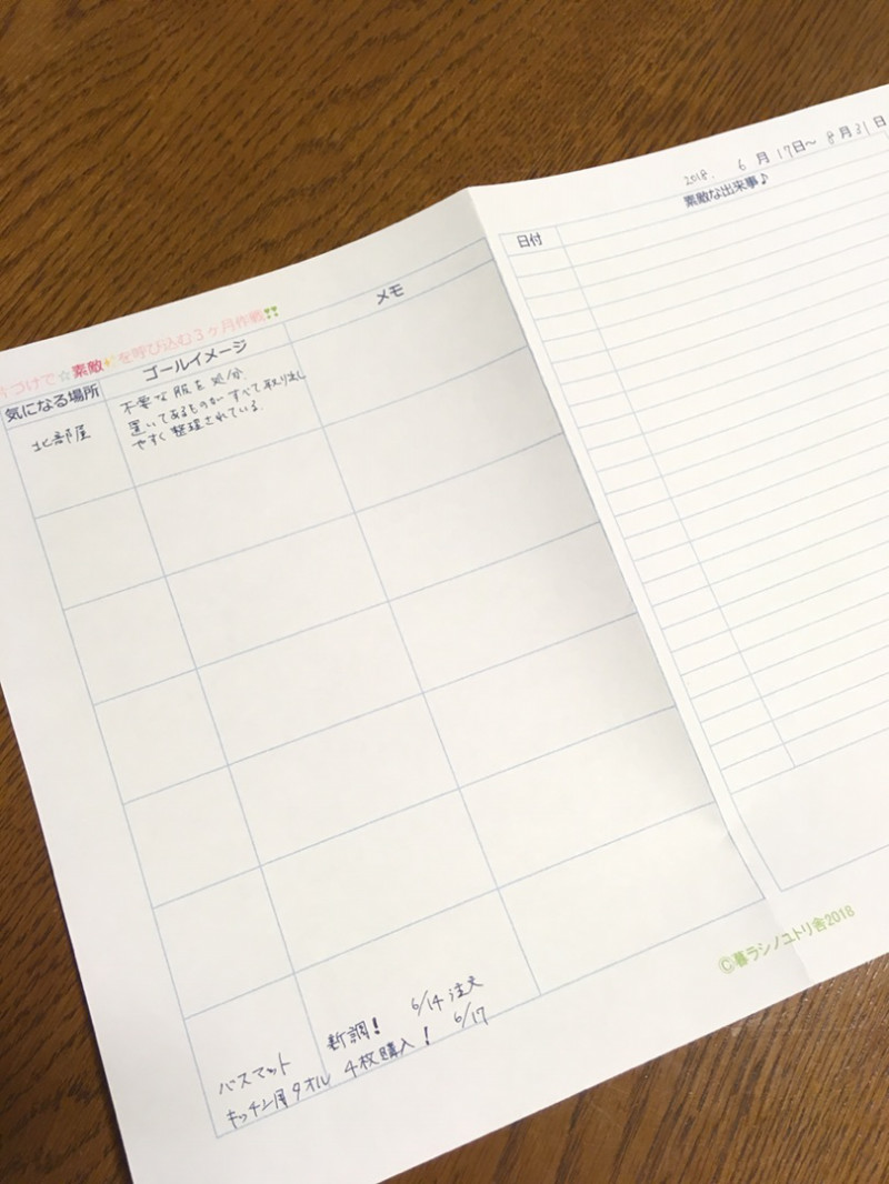 バスマットを新調したり、キッチン用のタオルを注文したことも、新しい流れを呼び込む行動!と意味づけて、シートに書き込みました。