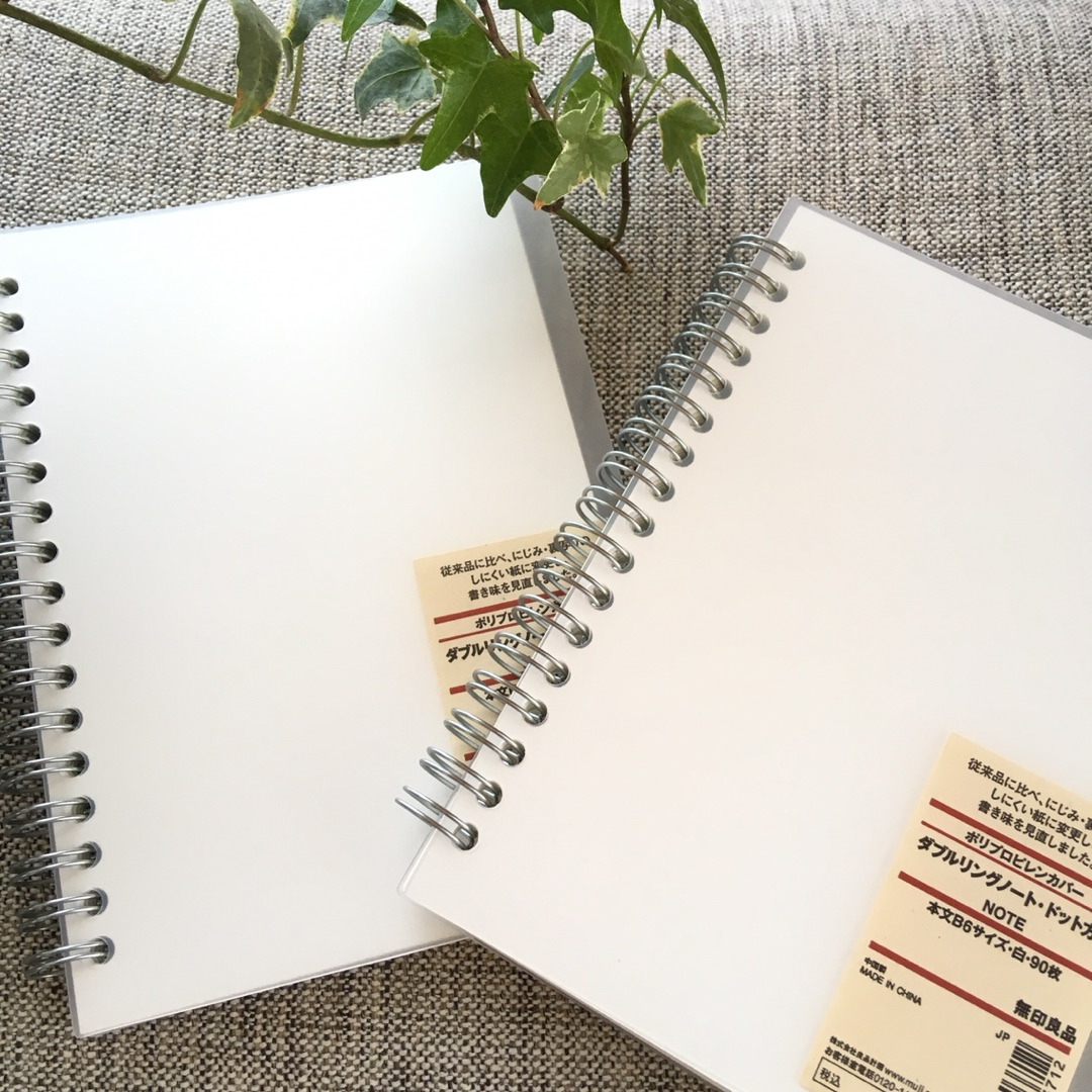 毎朝ノートに思ったことを走り書きする「モーニングページ」用のノートとも、無印のを使ってます。