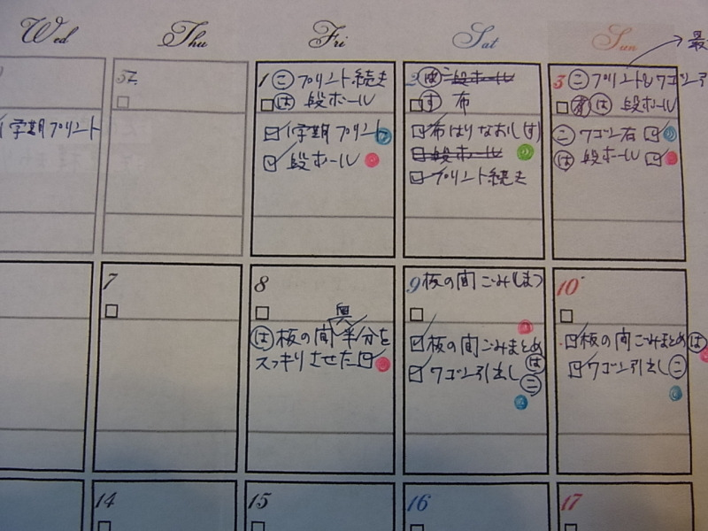 8月はコハスをバランスよくやりたいなという気持ちがあったので、片づけた場所の記録の横に「こ」とか「は」とかメモしていました。