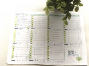 このシートは、シンプルな作りになっているので、片付け以外に習慣化したいことの記録にも使えます。