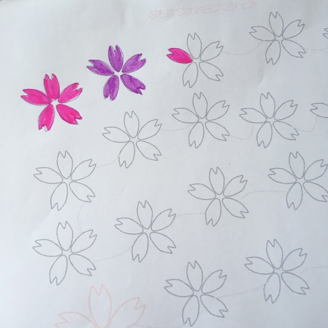 最初ね、私このプロジェクトをなかなか軌道に乗せることができなくて、花びらのぬりえも、カラーペンにしようかなどとブレてました。