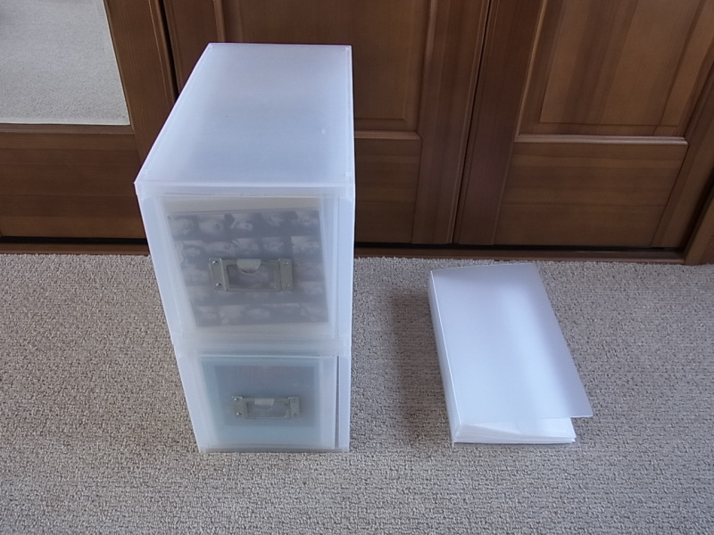 第一段階としては、まず1ヶ所に集め、CD用のプラスチック引き出しに入れました。