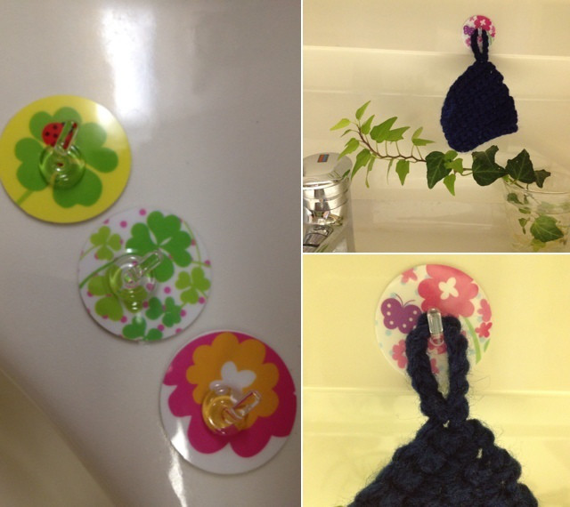 洗面所では、置き場を特に決めてなかったのですが、こんな可愛いフックを見つけました。