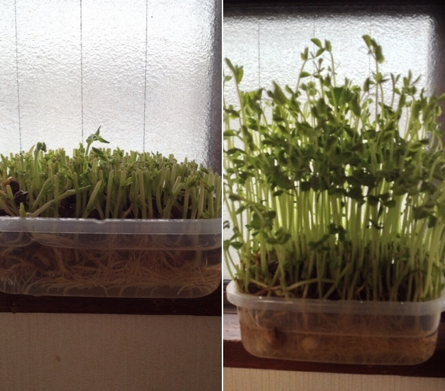 豆苗を買って、食べてしまってから根っこの部分を水につけておくと…