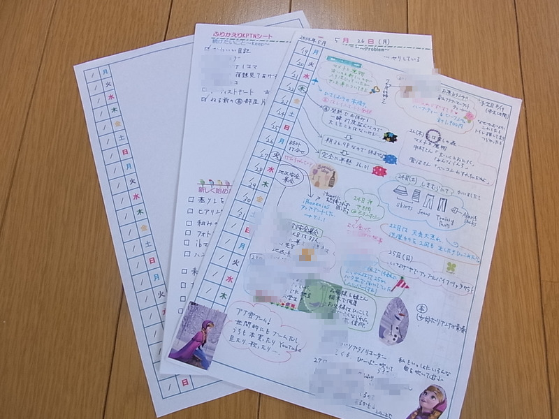 (2枚目の紙は1週間の振り返り用のオリジナルシート。またの機会に詳しくご紹介します)