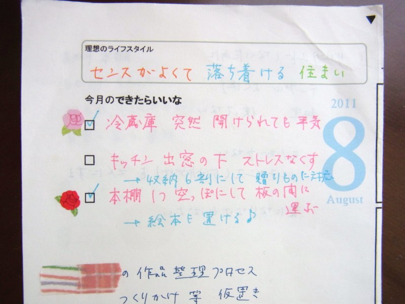 1つ前の記事で予告した、るる子の8月分の「今月のできたらいいな」実例です。